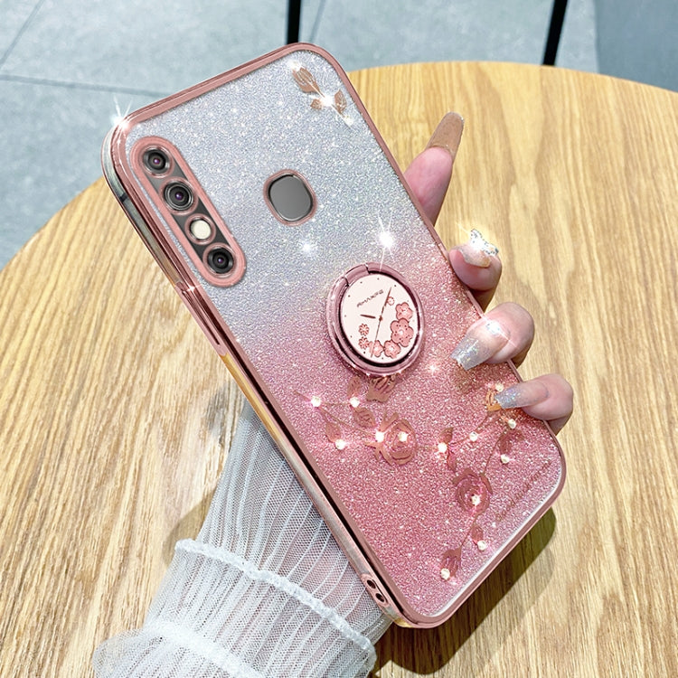 Estuche para Infinix Hot 8 con Anillo de Flor Inmortal y Brillo Degradado (Rosa)