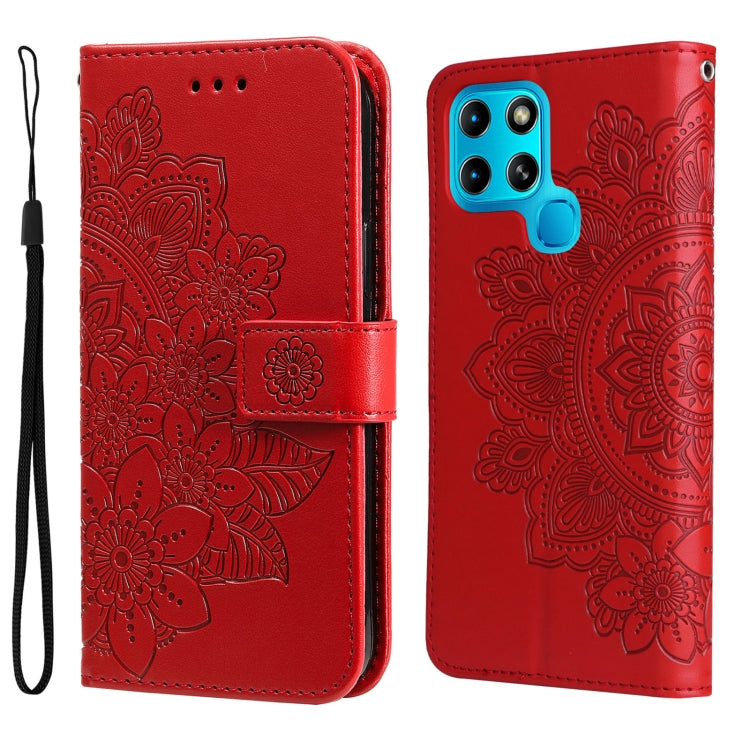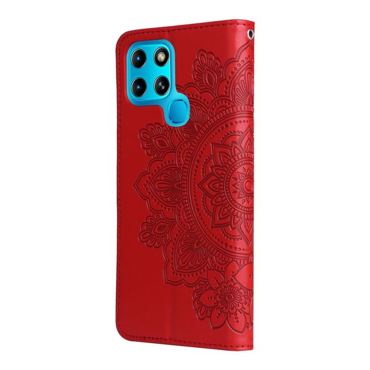 Estuche de Cuero para Infinix Inteligente 6 Flores de 7 Pétalas en Relieve (Rojo)