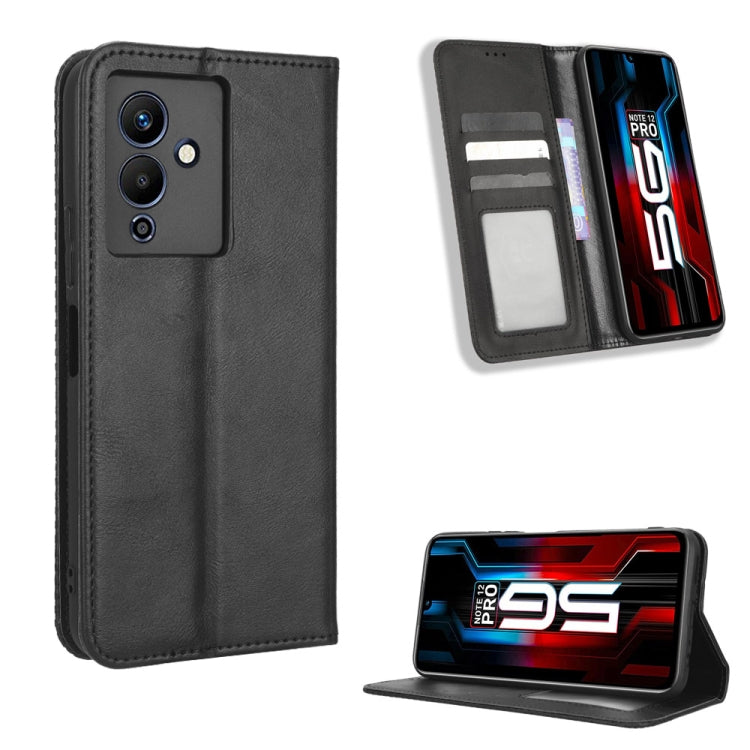 Funda de Cuero para Infinix Note 12 5G y Note 12 Pro 5G con Hebilla Magnética y Textura Retro (Negro)
