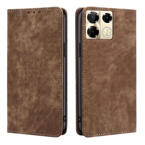 Funda de Cuero Magnética Rfid para Infinix Note 40 Pro 5G con Cepillo Antirrobo (Marrón)