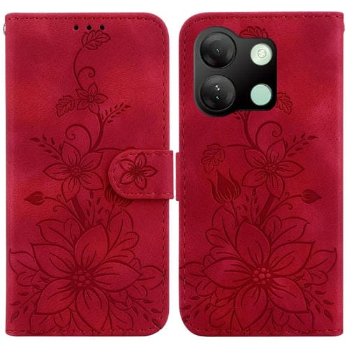 Funda de Cuero en Relieve para Infinix Smart 7 HD Lily (Rojo)