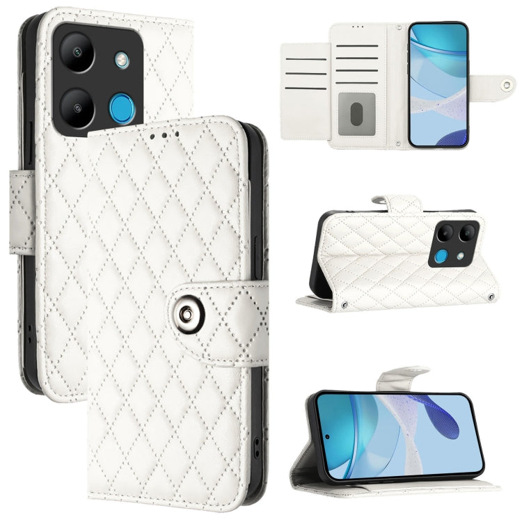 Funda para Teléfono Infinix Smart 7 X6515 Cuero con Tapa Textura Rómbica y Cordón (Blanco)