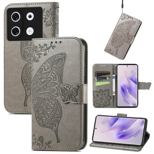 Funda para Infinix Zero 30 4G de Cuero con Relieve Flor de Amor y Mariposa (Gris)