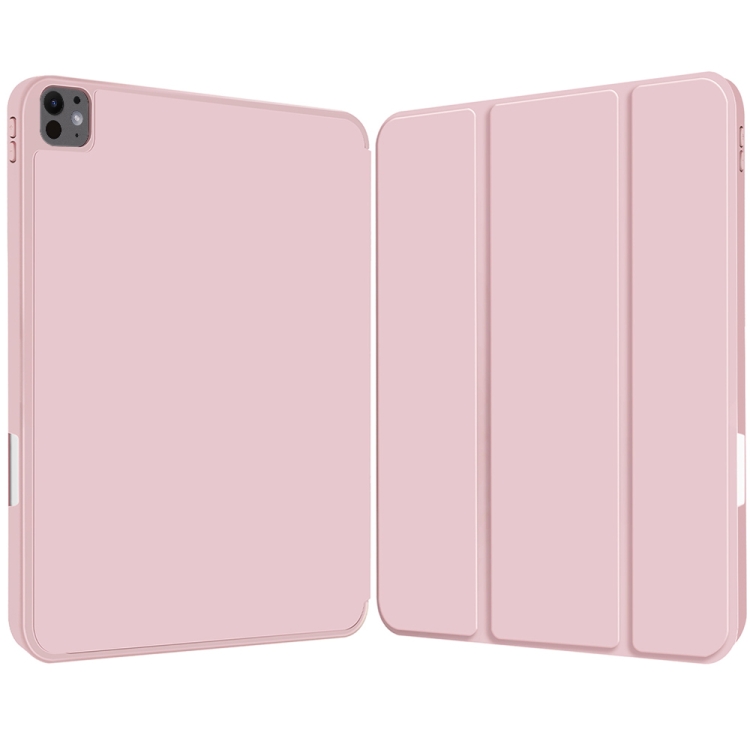 Funda de Cuero Inteligente TPU 3 Pliegues con Ranura Bolígrafo para iPad Pro 11 (2024) (Rosa)
