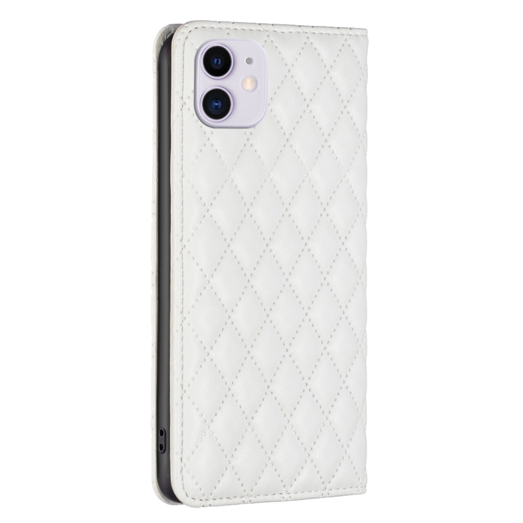 Funda Flip para iPhone 11 Diamond Lattice Leather Magnetic Blanco