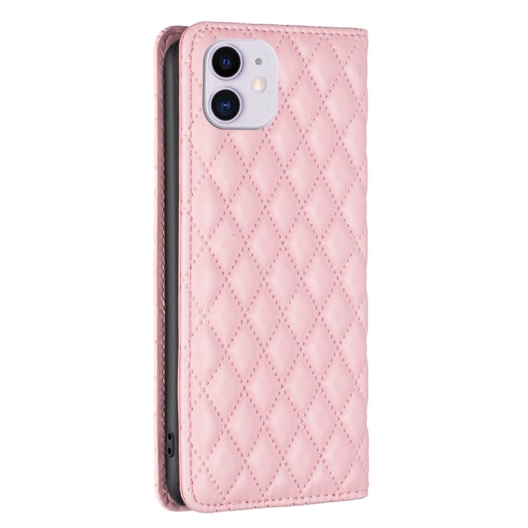 Funda para iPhone 11 Diamond Lattice Leather Flip con cierre magnético (Rosa)