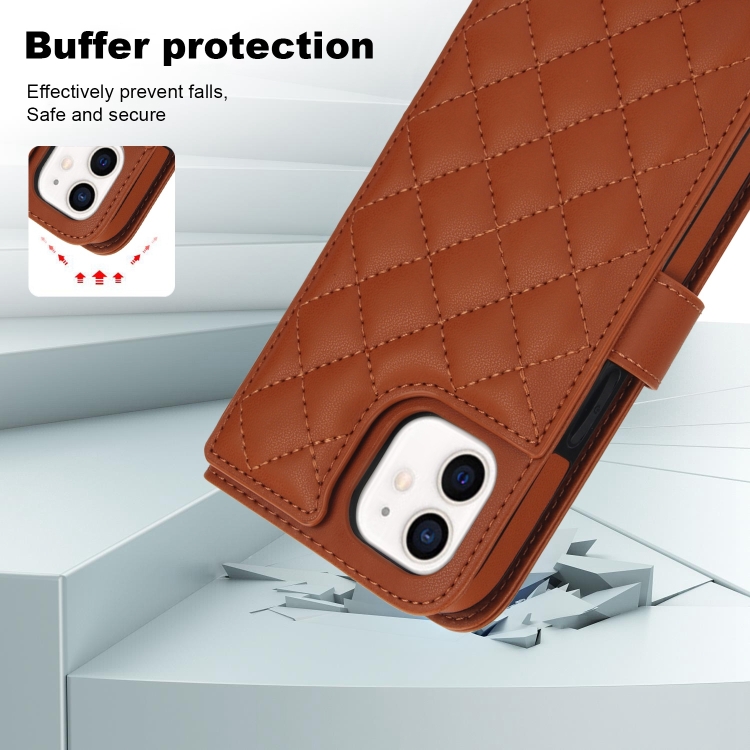 Estuche para Teléfono iPhone 11 Cuero Rómbico Multifunción Cruzado (Marrón)
