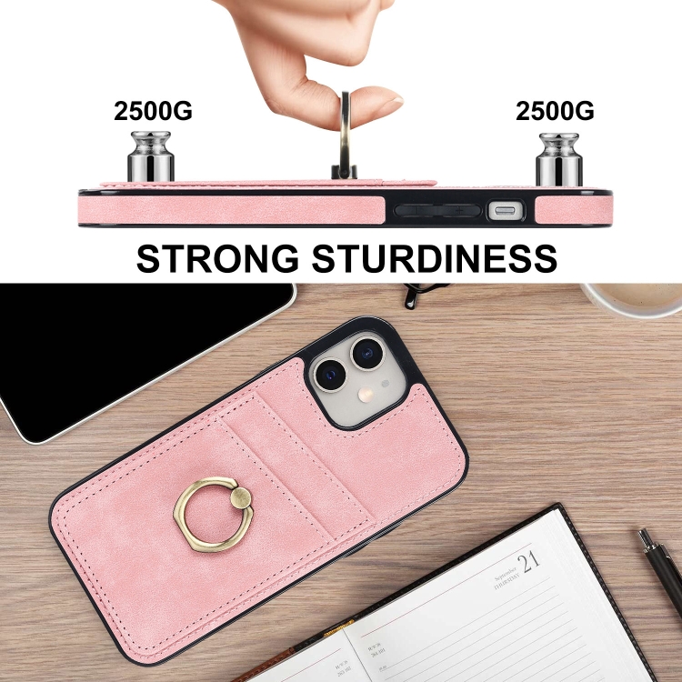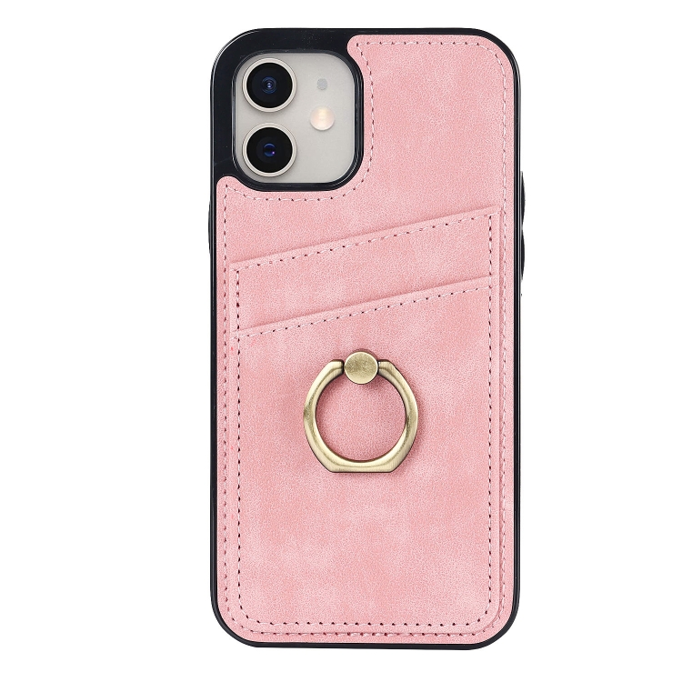 Funda de Teléfono iPhone 11 Cuero Parche Vintage Soporte para Anillo (Rosa)