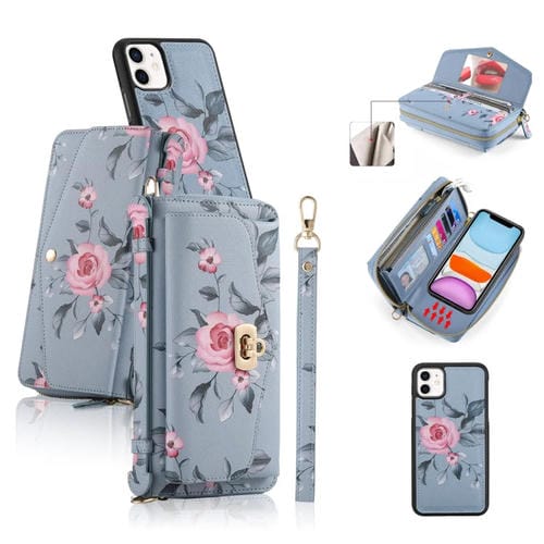 Funda para Teléfono iPhone 11 Pola Flower Cuero Billetera Cremallera Multifuncional (Azul)