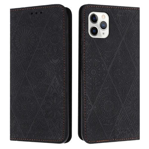 Estuche para Teléfono iPhone 11 Pro Cuero Adsorción Relieve Étnico (Negro)