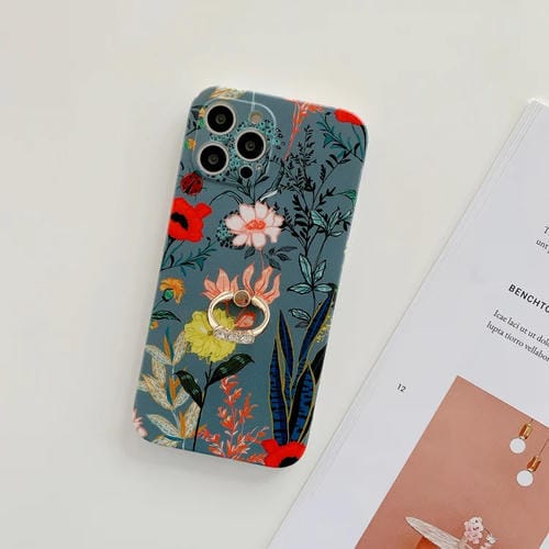 Funda TPU iPhone 11 Pro Flowers Pattel IMD con Anillo de Diamante Metal (Verde)