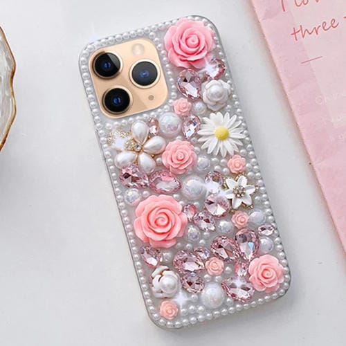 Estuche para Teléfono iPhone 11 Pro Rose con PC Diamond Hecho a Mano (Rosa)