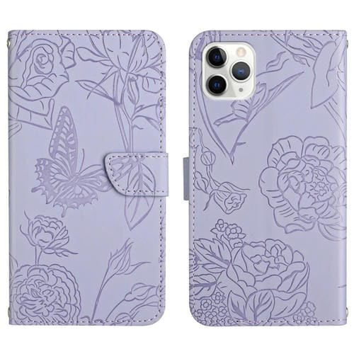Funda para iPhone 11 Pro Skin Feel Butterfly Peony Cuero en Relieve (Púrpura)