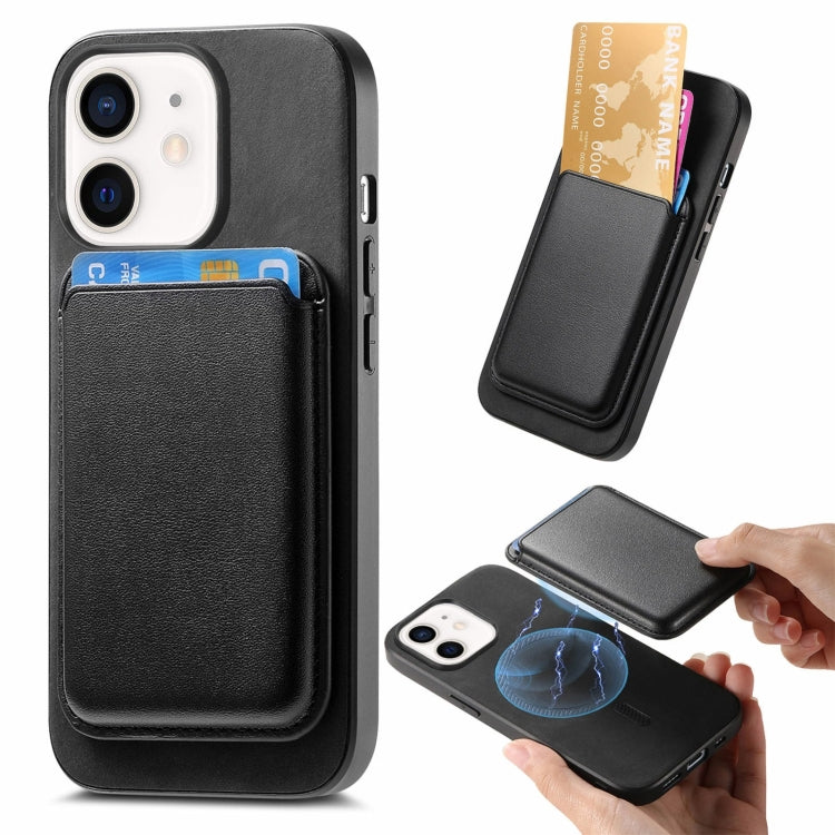 Funda para Teléfono iPhone 11 Retro Magsafe Card Bag PU con Contraportada (Negro)