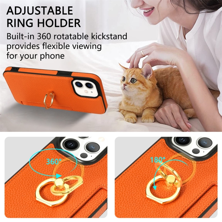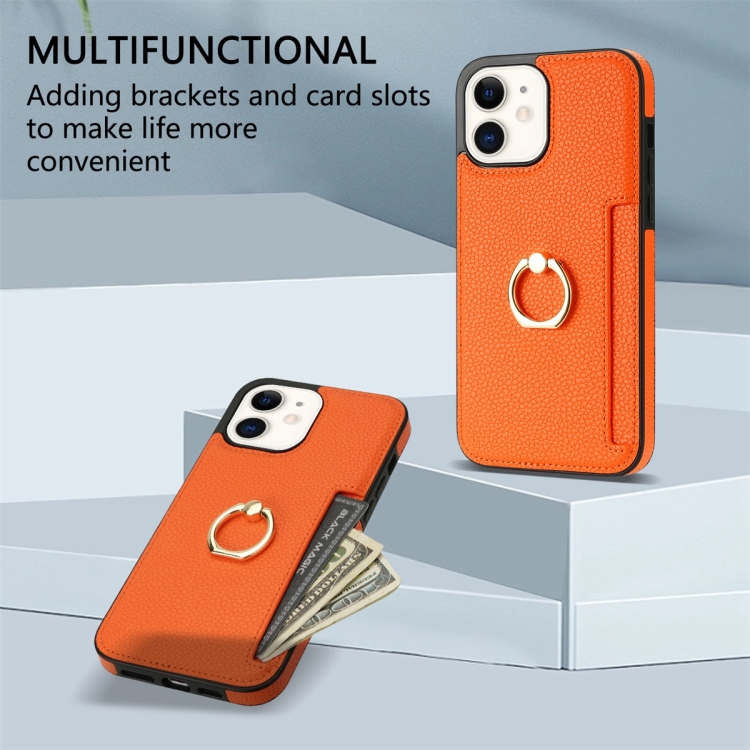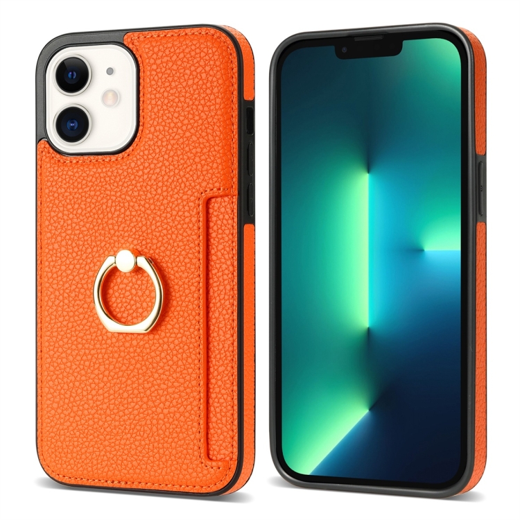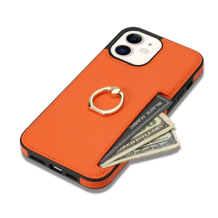 Funda Trasera para iPhone 11 Ring Card Litchi Cuero (Naranja)