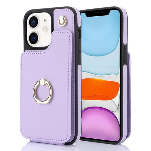 Funda para Teléfono Ym005 Skin Feel Card Bag para iPhone 11 con Cordón Largo (Púrpura Claro)