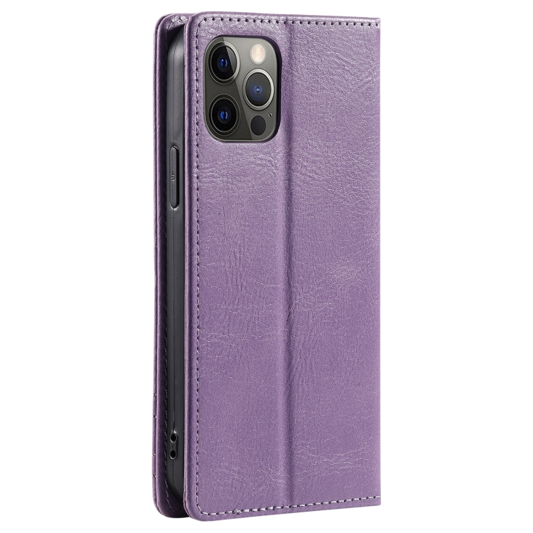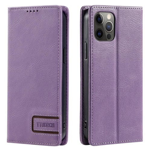 Funda de teléfono Ttudrch para iPhone 12 / 12 Pro con protección RFID cuero magnético textura retro (Púrpura)