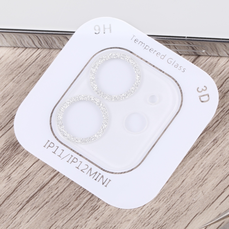 Película Lente Cámara Vidrio Templado iPhone 12 Mini 11 con Anillo Brillante (Plata)