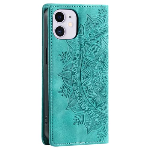 Funda de Cuero Magnética Totem para iPhone 12 Mini en Relieve (Verde)