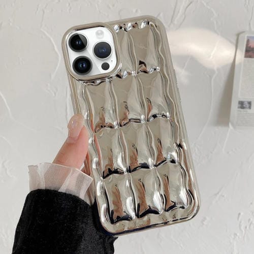 Estuche para teléfono TPU iPhone 12 Pro con textura de rejilla 3D (Plateado)