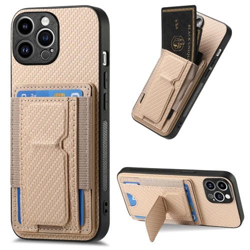 Funda para Teléfono iPhone 12 Pro Bolsa para Tarjeta Elástica Soporte Plegable Fibra de Carbono (Caqui)
