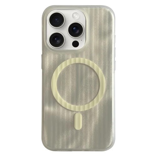 Funda para Teléfono iPhone 12 Pro Magsafe Magnética con Sensación de Piel a Rayas (Amarillo)