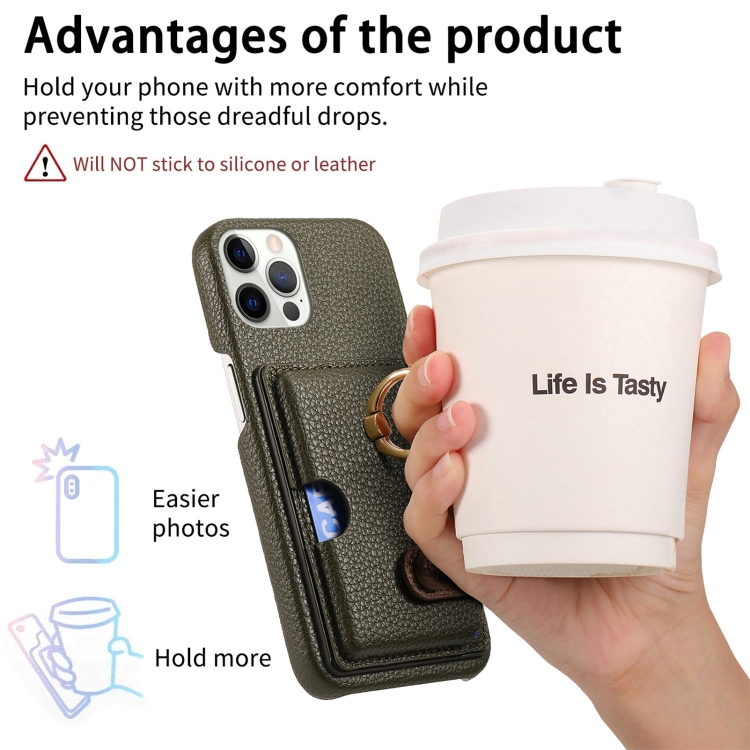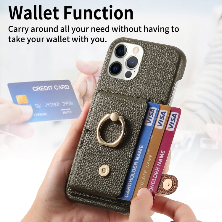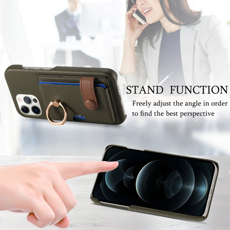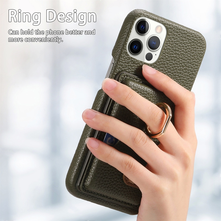 Funda para Teléfono iPhone 12 Pro Litchi Leather Oil Edge Ring Card Back (Verde)