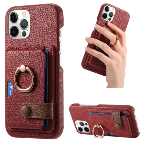 Funda para Teléfono iPhone 12 Pro Max Litchi Leather Oil Edge Ring Card Back (Rojo)