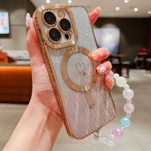 Funda para Teléfono iPhone 12 Pro Max Loves Leaves Pulseras con Brillo Degradado Magsafe TPU Fibra de Carbono (Oro)