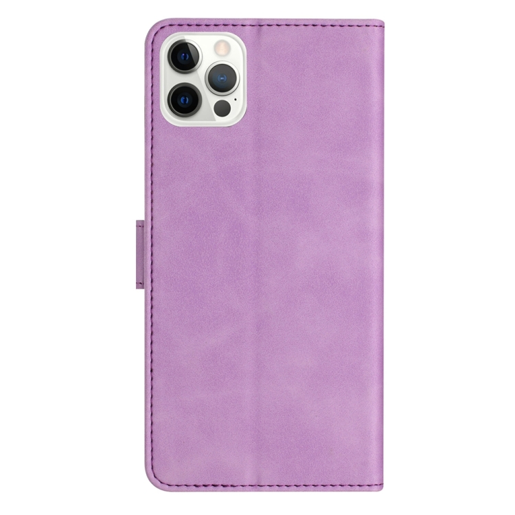 Estuche para teléfono iPhone 12 Pro Max Seven Butterflies de cuero en relieve (Púrpura)