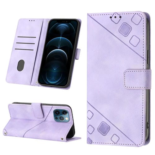 Estuche para Teléfono iPhone 12 Pro Max Skin-Feel Cuero En Relieve (Púrpura Claro)