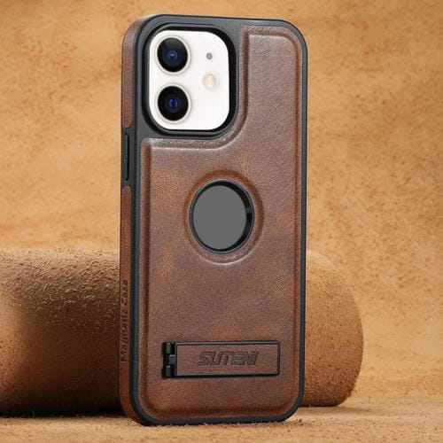 Funda Trasera Suteni G2 Magsafe para iPhone 12 con Soporte Cuero Oil Wax (Marrón)
