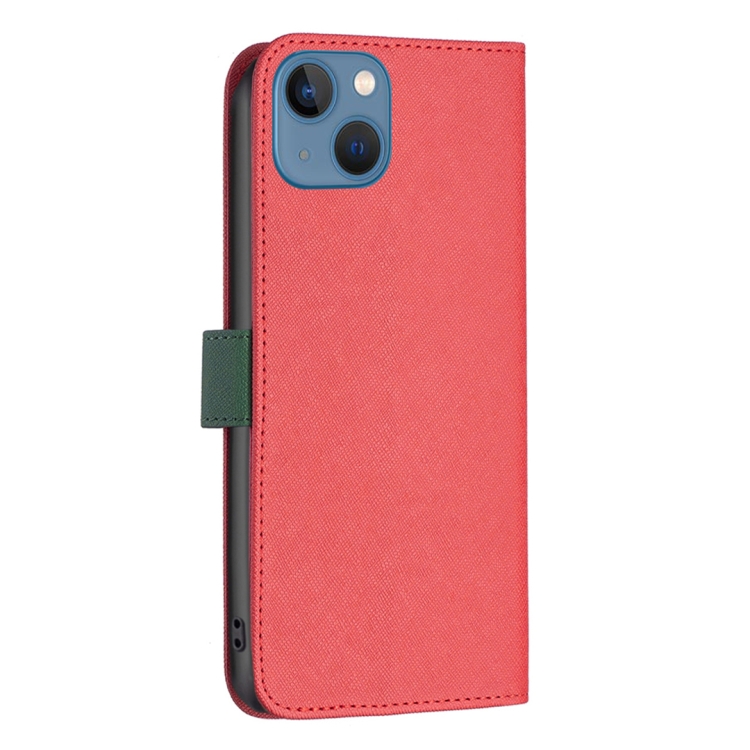 Funda para iPhone 13 Mini Bf13 Color Matching Cross Texture Leather Phone Case (Rojo)