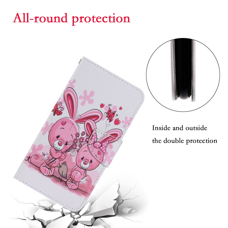 Funda de Cuero para Teléfono iPhone 13 Mini con Patrón de Dibujo a Color (Lindo Conejo)