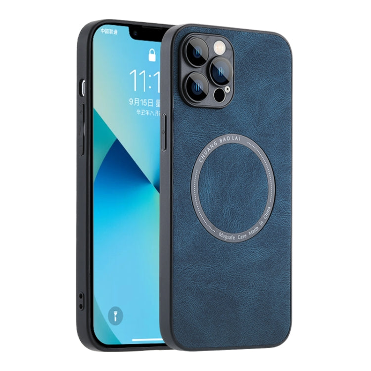 Funda de Teléfono para iPhone 13 Pro Magsafe con Textura de Cuero (Azul)