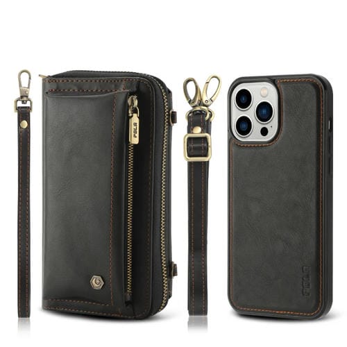 Funda para Teléfono iPhone 13 Pro Max Crossbody Cuero con Billetera y Cremallera (Negro)