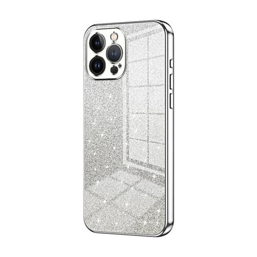 Estuche para Teléfono iPhone 13 Pro Max Galvanizado con Brillo en Polvo Degradado (Plateado)