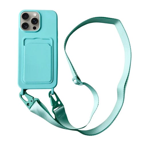 Funda para Teléfono iPhone 13 Pro Max Silicona Líquida Ranura para Tarjeta y Cordón (Verde Menta)