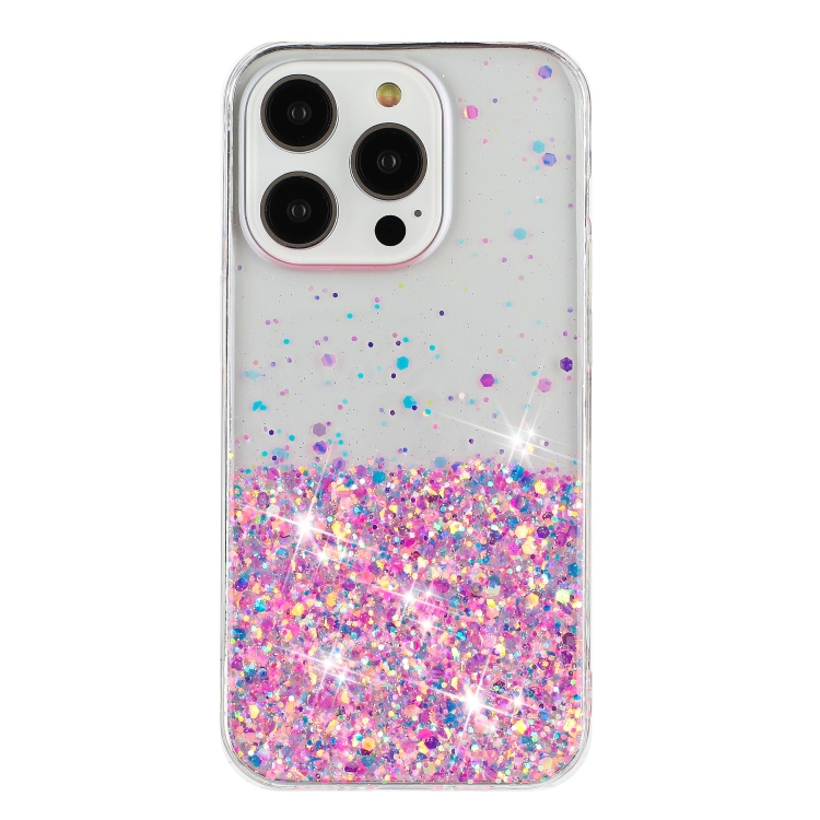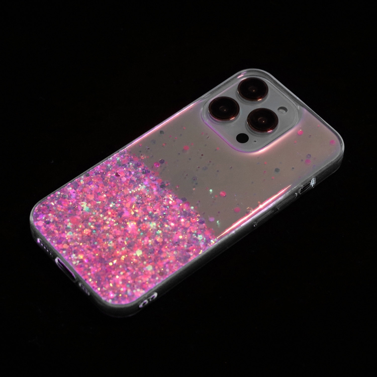 Funda para Teléfono TPU iPhone 13 Pro Max con Polvo de Brillo Noctilucente y Marco Transparente (Rosa)