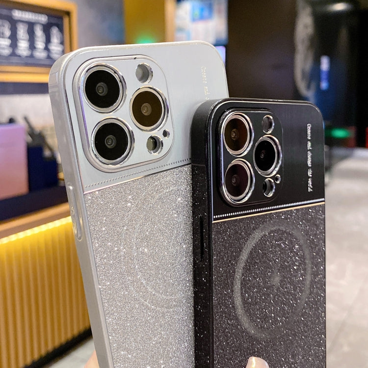 Caja de Teléfono para iPhone 13 Pro Max Magsafe a Prueba de Golpes con Polvo de Brillo Metálico Magnético (Gris)
