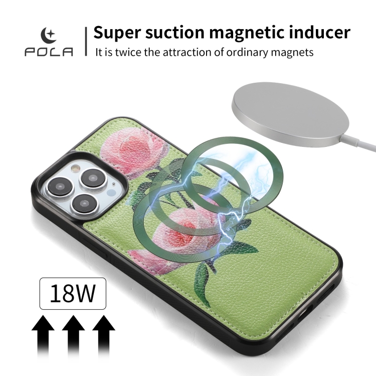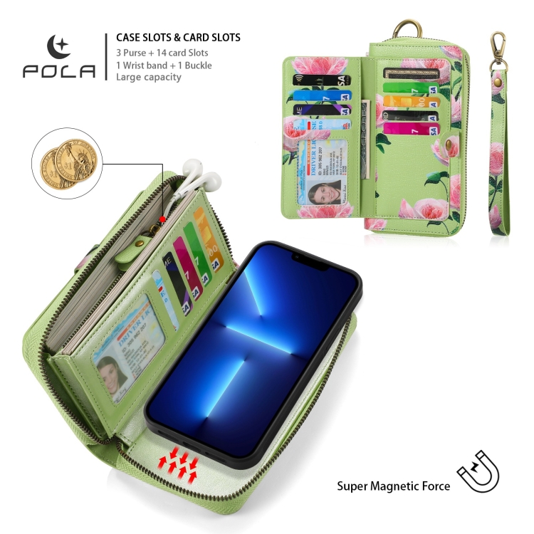 Funda de Cuero Pola Magsafe para iPhone 13 Pro Max con Billetera y Cremallera Multifuncional (Verde)