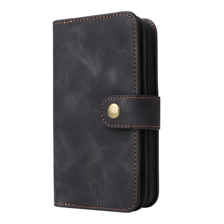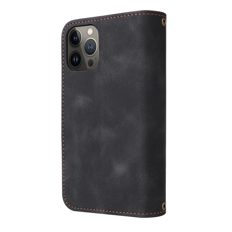 Funda para iPhone 13 Pro Ranura para Tarjeta Multifuncional Cremallera Cartera Flip de Cuero (Negro)