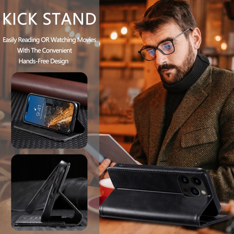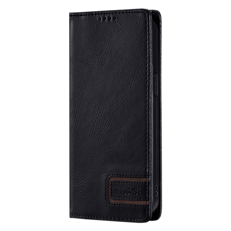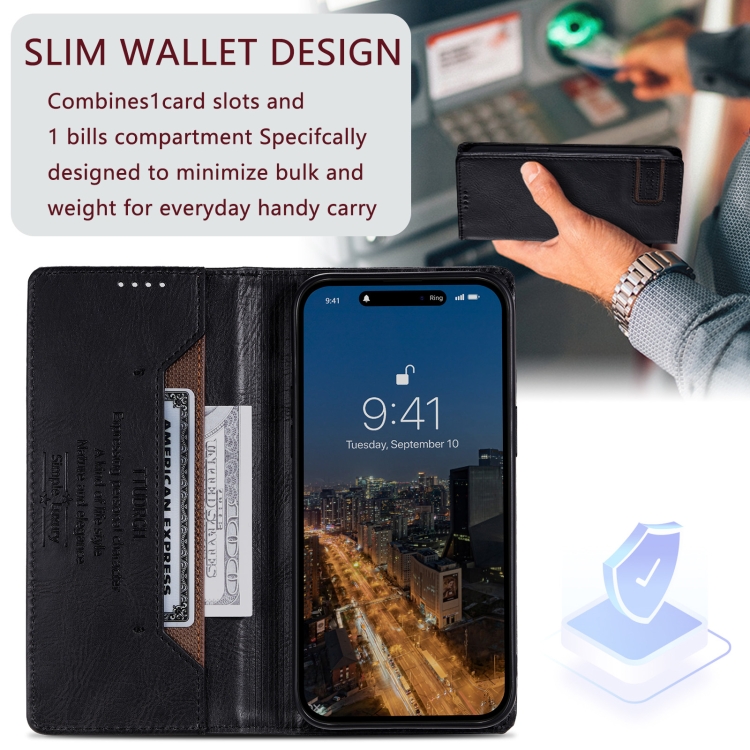 Funda de teléfono Ttudrch para iPhone 13 Pro con RFID Cuero Magnético Textura Retro (Negro)