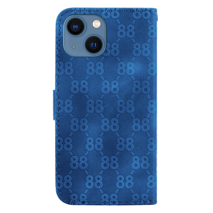 Estuche para Teléfono iPhone 14 Cuero En Relieve Doble Forma de 8 (Azul)