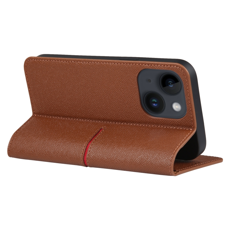 Estuche para Teléfono Gebei iPhone 14 Cuero con Tapa Horizontal de Grano Superior (Marrón)