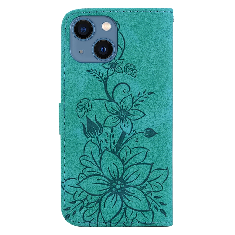 Funda para Teléfono iPhone 14 Lily Cuero En Relieve (Verde)