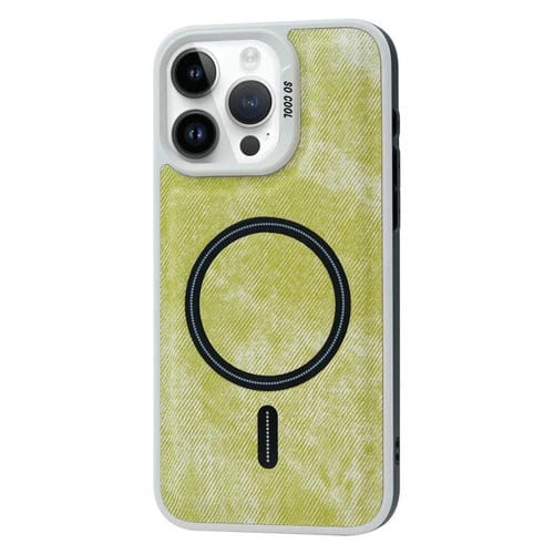 Funda para Teléfono iPhone 14 Pro Max Contraste Color Denim Magsafe Magnética (Amarillo Verde)