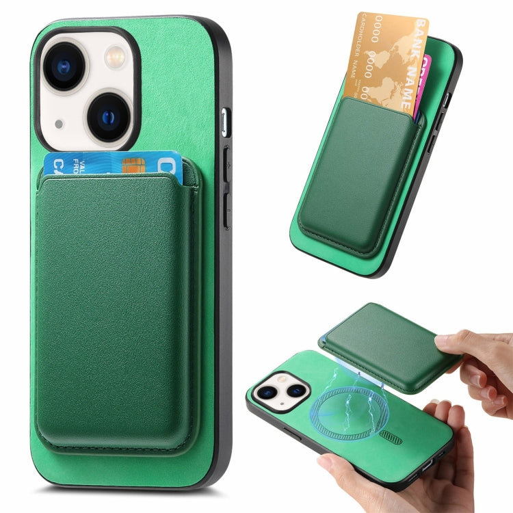 Funda para Teléfono iPhone 14 Retro Magsafe Card Bag Pu con Contraportada (Verde)