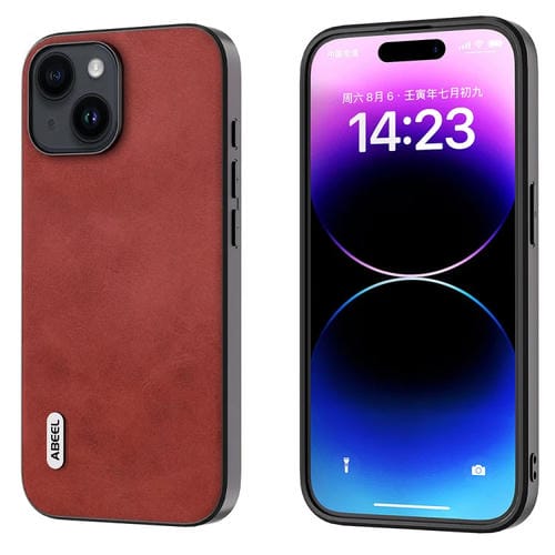 Funda de Teléfono Abeel para iPhone 15 Pu con Textura de Piel de Vaca Doble Color (Rojo)