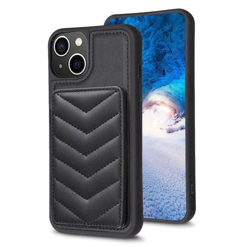 Funda para iPhone 15 Bf26 Wave Pattern Card Bag Holder Phone Case (Negro)